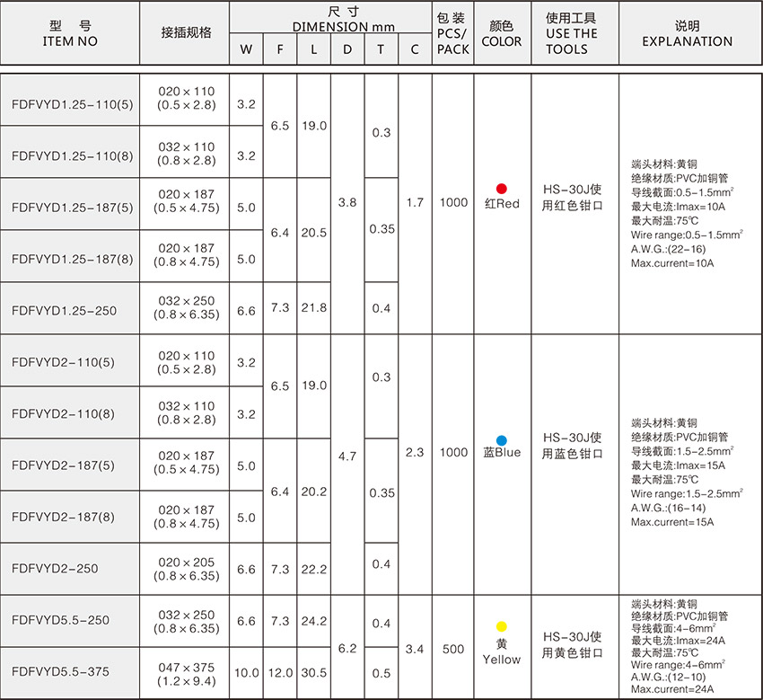 产品概述:FULLY INSULATED FEMALE QUICK DISCONNECTS Material Insulation:Vinyl Terminal Body:Brass Metallic Sleeve:Copper Plating:Tin