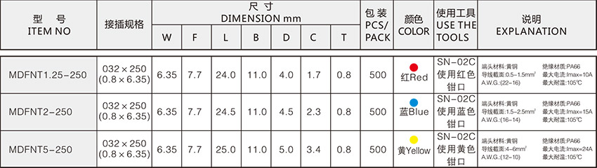 产品概述:FULLY INSULATED-FEMALE QUICK DISCONNECTS Material Insulation:Nylon Terminal Body:Brass Plating:Tin