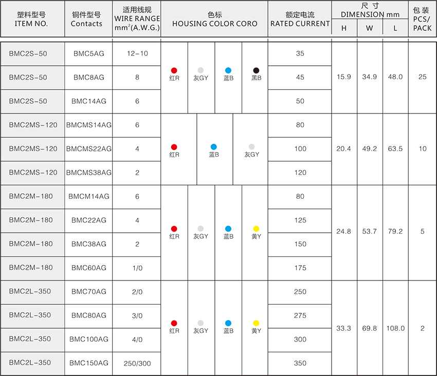 工作电流50A-350A/配用10/12-4/0AWG的导线;